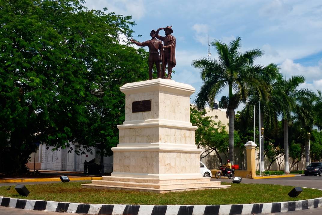 Esta es la catedral más antigua del continente americano en tierra firme, terminada en 1598 con piedras reutilizadas del templo maya que antes ocupaba el sitio. Sus dos torres gemelas son el punto de referencia visual del Centro.