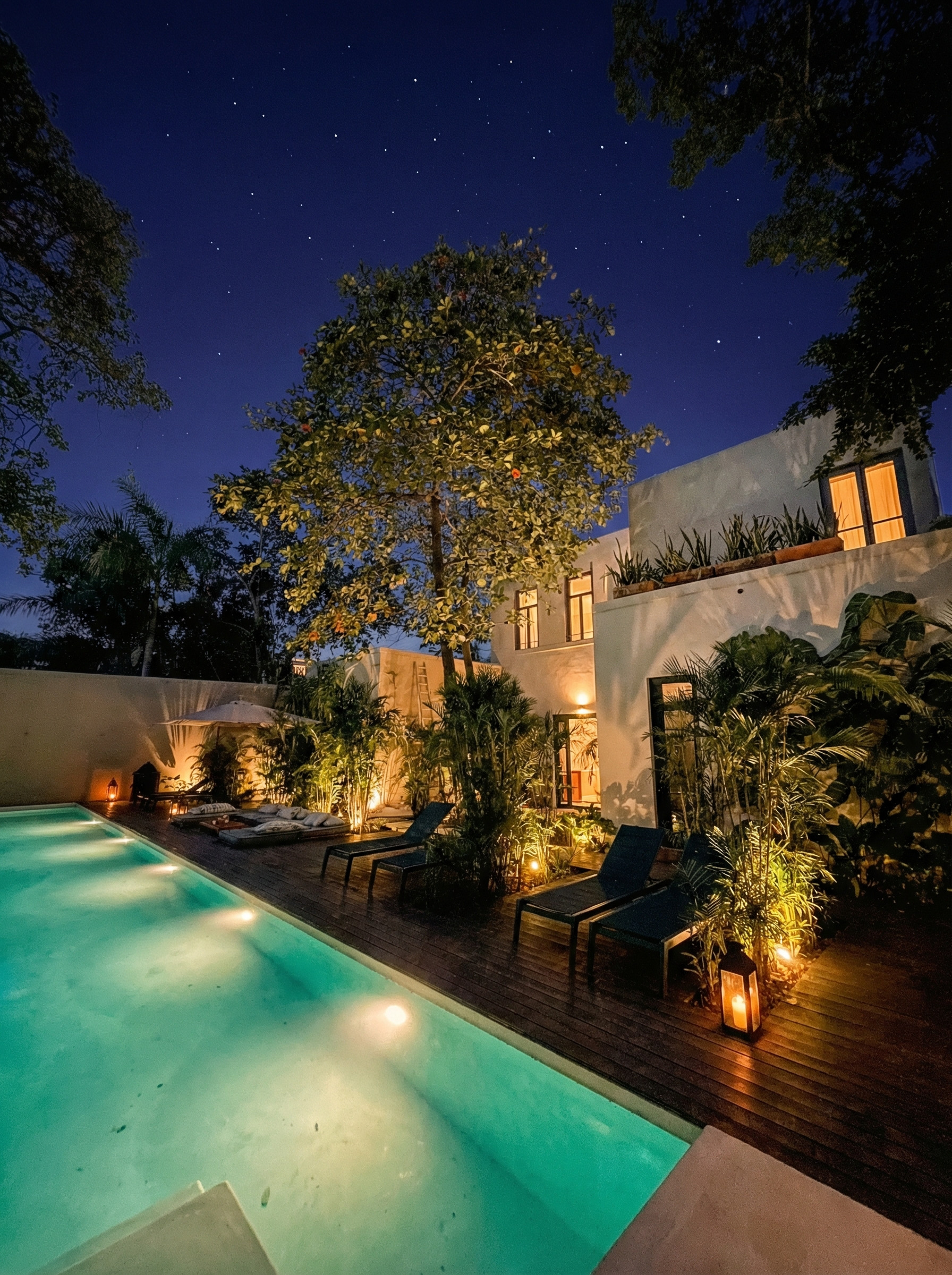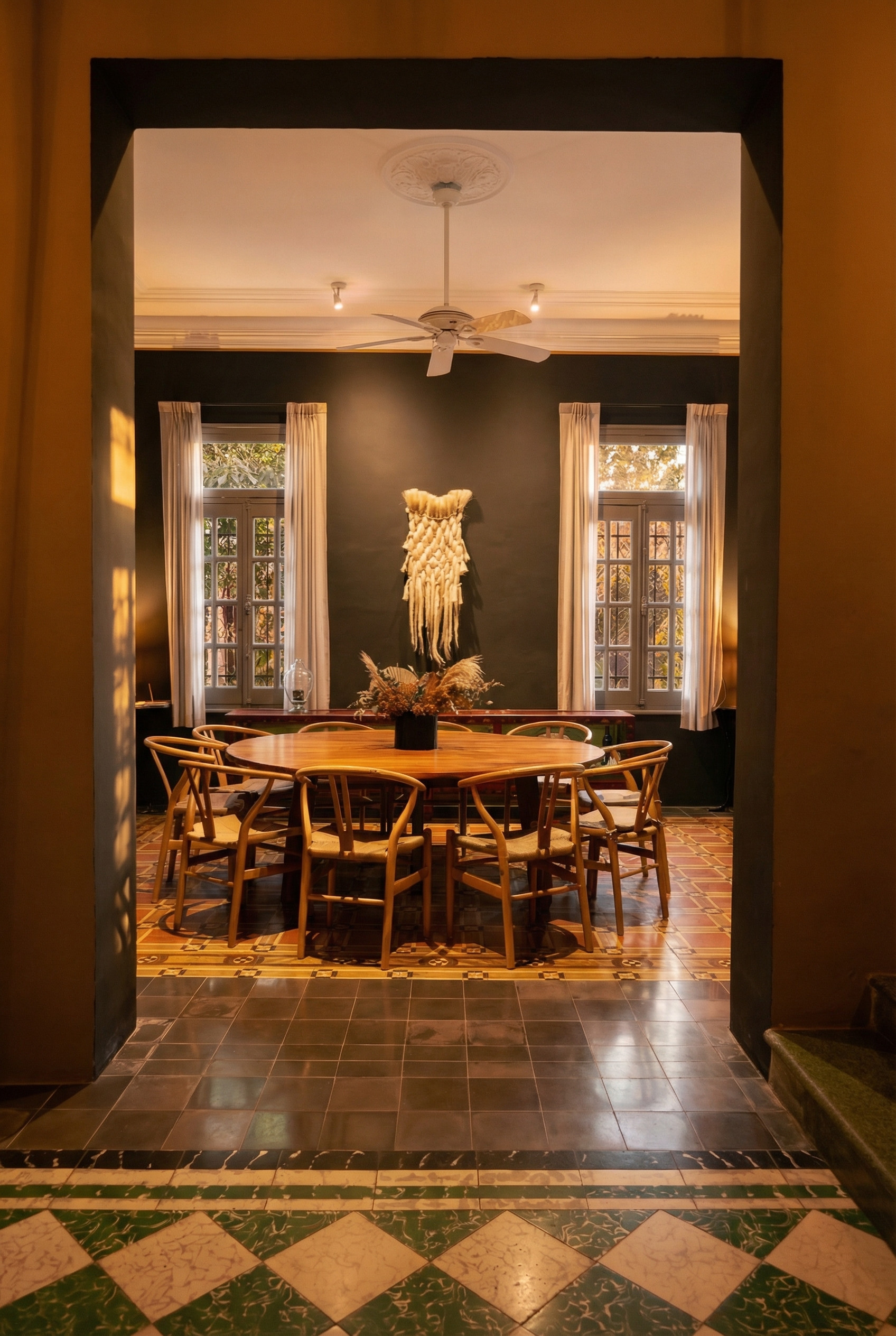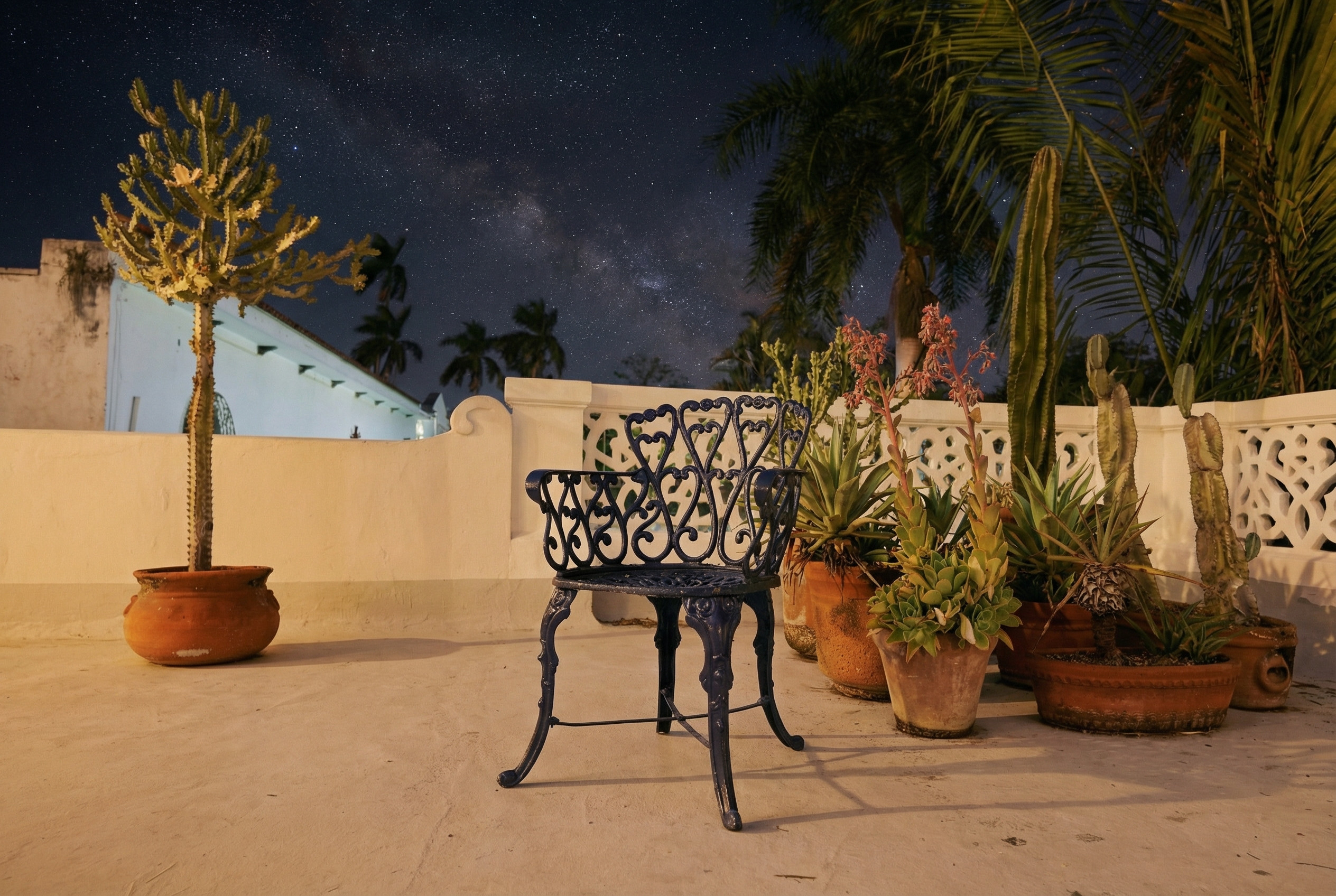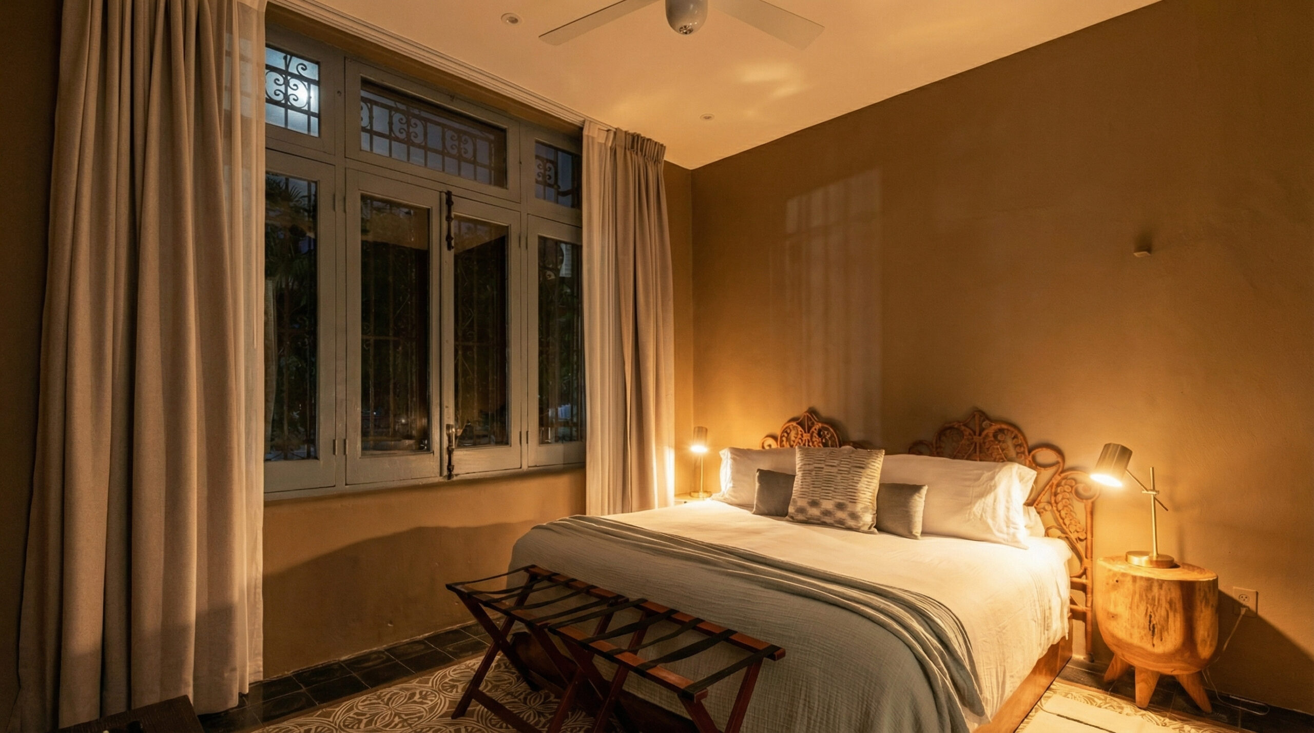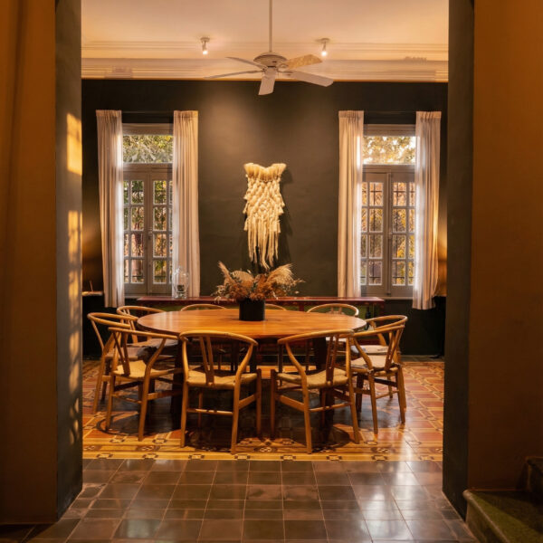 Casa Tuut is nestled among century-old tamarind and mango trees, which naturally keep the home cool throughout the day. Built using traditional mampostería techniques, its 60 cm-thick stone walls reflect timeless craftsmanship.